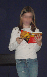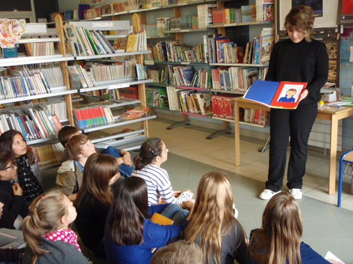 par le bibliothéâtre de St Barthélémy d’Anjou : spectacle avec deux comédiennes, Hélène Poussin (de la Compagnie Les pieds bleus à Figeac) et Céline Villalta, et un accordéon, à Loudéac en 2005. Contact: cielespiedsbleus@gmail.com