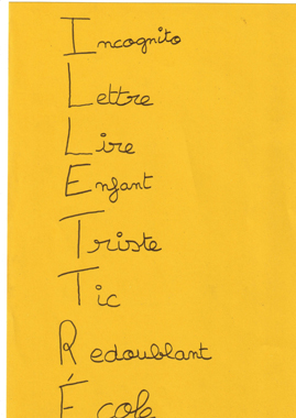 A l’école, puis au collège, il a toujours su, jusqu’à présent, donner le change et faire illusion. Il préfère passer pour un  jeune difficile, fainéant,  provocateur, qui refuse de travailler, plutôt qu’avouer ce dont il a honte. Lire a l’air si naturel aux autres! Pourquoi, lui, est-il différent, pourquoi n’y  parvient-il pas?  Quel est ce tabou qui l’a empêché d’apprendre ?