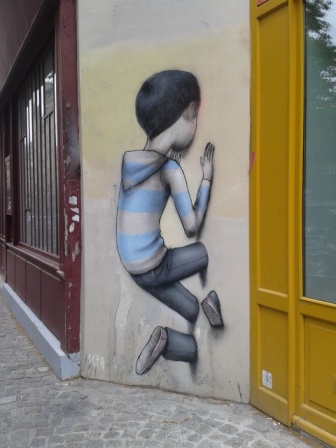 Le point de départ, ce pourrait être lui. Je ne connais pas son nom. Je ne vois pas son visage. il porte souvent un tee-shirt marin. Il a l’air assez jeune. Une chose est sûre, c’est qu’il a manifesté très tôt un vif intérêt pour les murs. C’est là qu’il est né. Du mur. Et c’est là que régulièrement, il retourne.