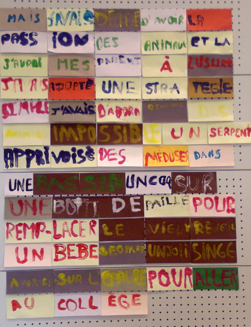 • Des monotypes réalisés au collège de Roisel (80) sous l’impulsion de Caroline Flamant -en forme de variations sur une phrase du roman