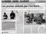 •  mai 2012 : à Airaines (80)  auprès de l’association AtoutLire de lutte contre l’illettrisme. Les travaux écrits par les jeunes (de l’association et du centre aéré)  ont donné lieu à une émouvante séance de lecture / projection publique en présence de la presse locale— et à la publication d’une plaquette.